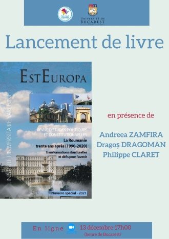 Le CEREFREA Villa Noël de l’Université de Bucarest a organisé, le 13 décembre 2021, à partir de 17h00 (heure de Bucarest) le lancement du numéro spécial « La Roumanie, trente ans après (1990-2020). Transformations structurelles et défis pour l’avenir » de la revue Est-Europa. Revue d’études politiques et constitutionnelles.