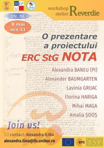 Le Centre Iconographè, le Département de Langue et Littérature Françaises de la Faculté de Langues et Littératures Etrangères de l’Université de Bucarest et le CEREFREA ont organisé, le 8 mai 2021, en ligne, à partir de 11h00, la présentation du projet ERC StG NOTA. Cette rencontre a fait partie des réunions de l’atelier Reverdie.