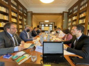 Lundi, 11 juillet 2022, a eu lieu, à la Villa Noël, la réunion du Conseil d’Administration du CEREFREA en présence du Recteur de l’Université de Bucarest, le Pr Marian PREDA (Président du Conseil), du Directeur du CEREFREA, le Pr Florin ȚURCANU, de l’Ambassadrice de France en Roumanie, Son Excellence Mme Laurence AUER, du Président du GADIF et Ambassadeur de Suisse en Roumanie, Son Excellence M. Arthur MATTLI, du Directeur de l’Institut Français de Roumanie, M. Julien CHIAPPONE-LUCCHESI, du Directeur Régional de l’Agence universitaire de la Francophonie en Europe Centrale et Orientale, M. Mohamed KETATA, du Délégué général Wallonie-Bruxelles à Bucarest, M. David ROYAUX et du représentant de la Nouvelle Université Bulgare, le Pr Antony TODOROV. Dans le cadre de cette réunion nous avons discuté et approuvé les orientations futures de l’activité du CEREFREA.